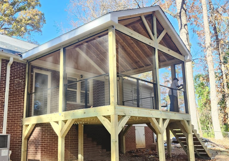 As expert deck builders in Charlotte and the surrounding area, we take pride in transforming outdoor spaces into beautiful and functional retreats. Our team specializes in designing and constructing custom decks that cater to the unique needs and preferences of each homeowner. With a passion for quality craftsmanship and attention to detail, we utilize premium materials to ensure our decks not only enhance the aesthetic appeal of your property but also stand the test of time. Whether you're looking for a cozy space for family gatherings or a stylish area to entertain guests, we work closely with you to create the perfect deck tailored to your lifestyle. Serving Charlotte and nearby communities, we are committed to delivering exceptional service and results that exceed your expectations, making your dream outdoor oasis a reality.